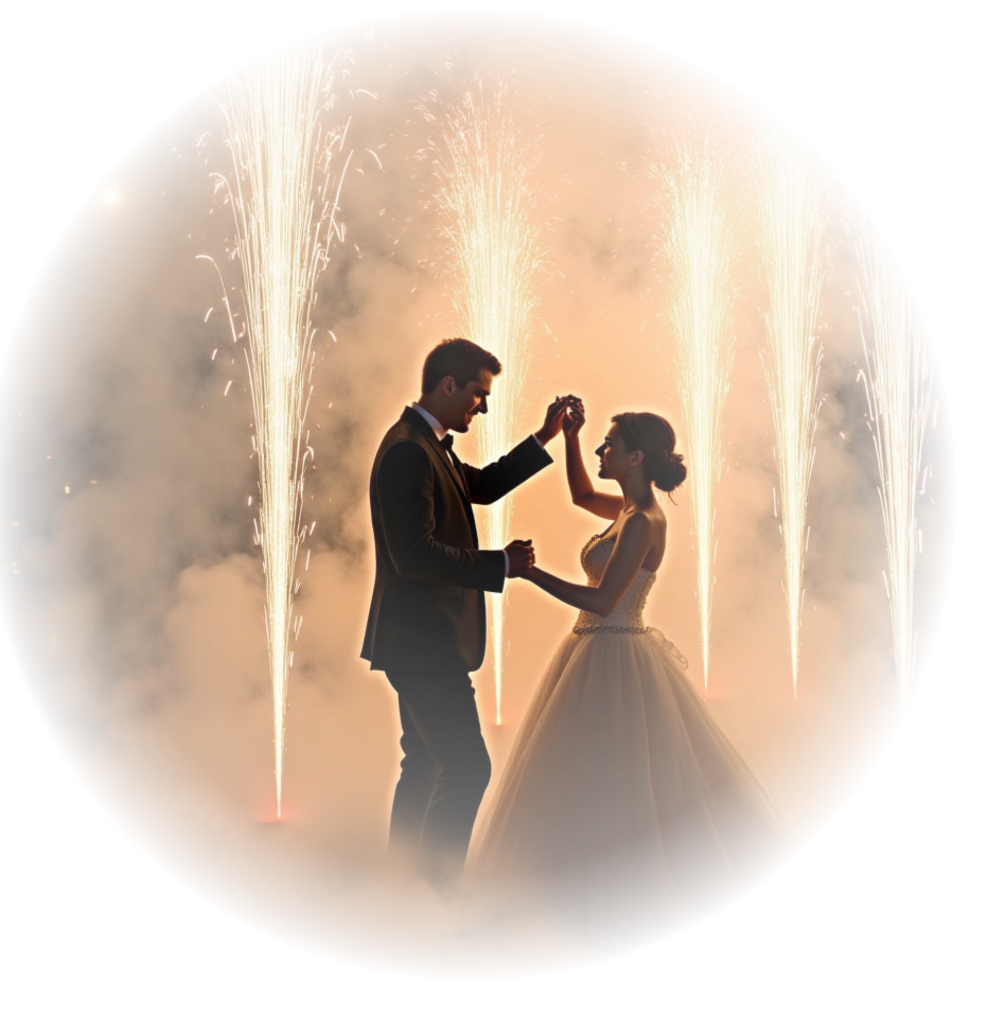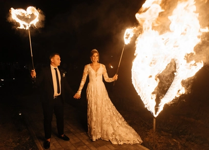Сказочная свадьба: Мы сделаем ваш первый танец под огненным дождем, украсим вечер пиротехническими вспышками и создадим атмосферу, которая останется в памяти гостей навсегда.
